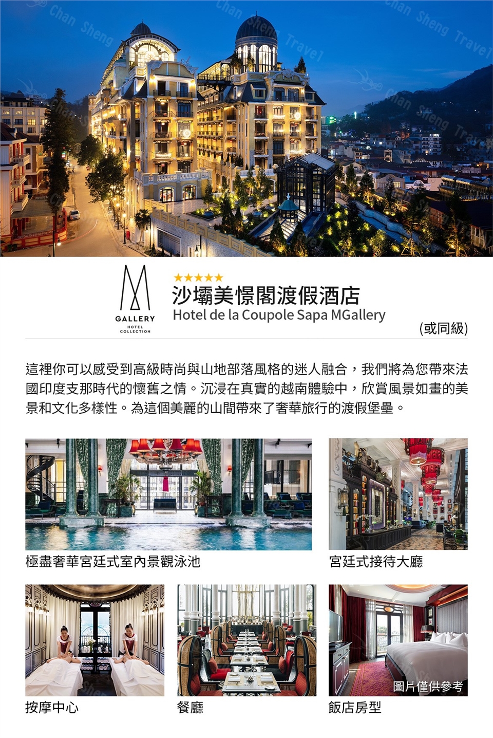 住 宿★★★★★ SILK PATH GRAND RESORT【沙壩絲綢格蘭】 或 ★★★★★HOTEL DELA COUPOLE MGALLERY SAPA CLASSIC【美憬閣】 或同級【二人一室】