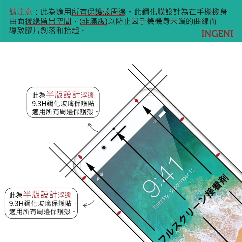 ◆保護膜一經撕開視同使用,使用前請再三確認比對孔位有無正確再進行貼合, 如有問題請儘快與我們聯繫,請勿貼 黏,如係人為貼黏失敗(玻璃彎曲、刮傷、破損)之更換商品將視狀況收取產品工本費。