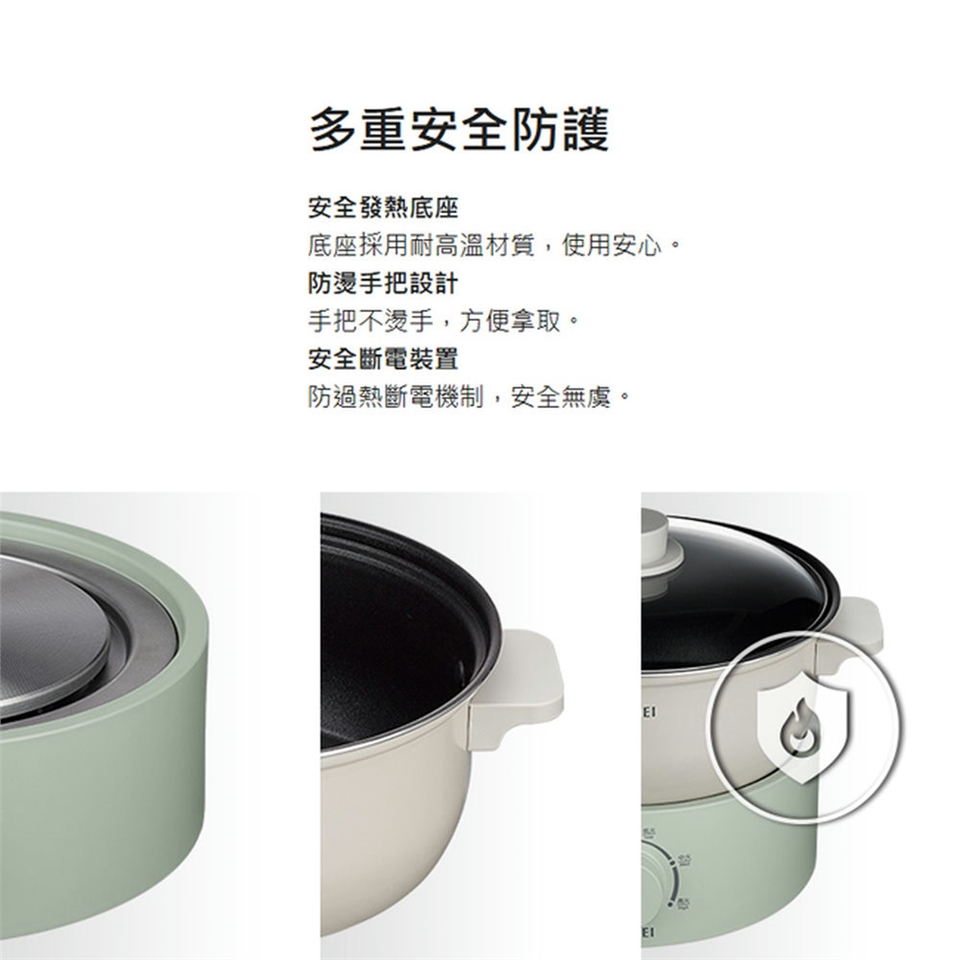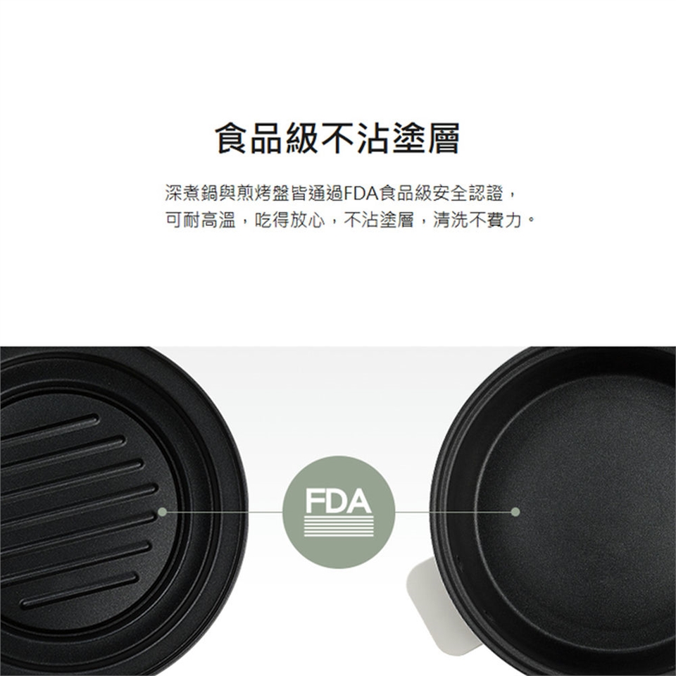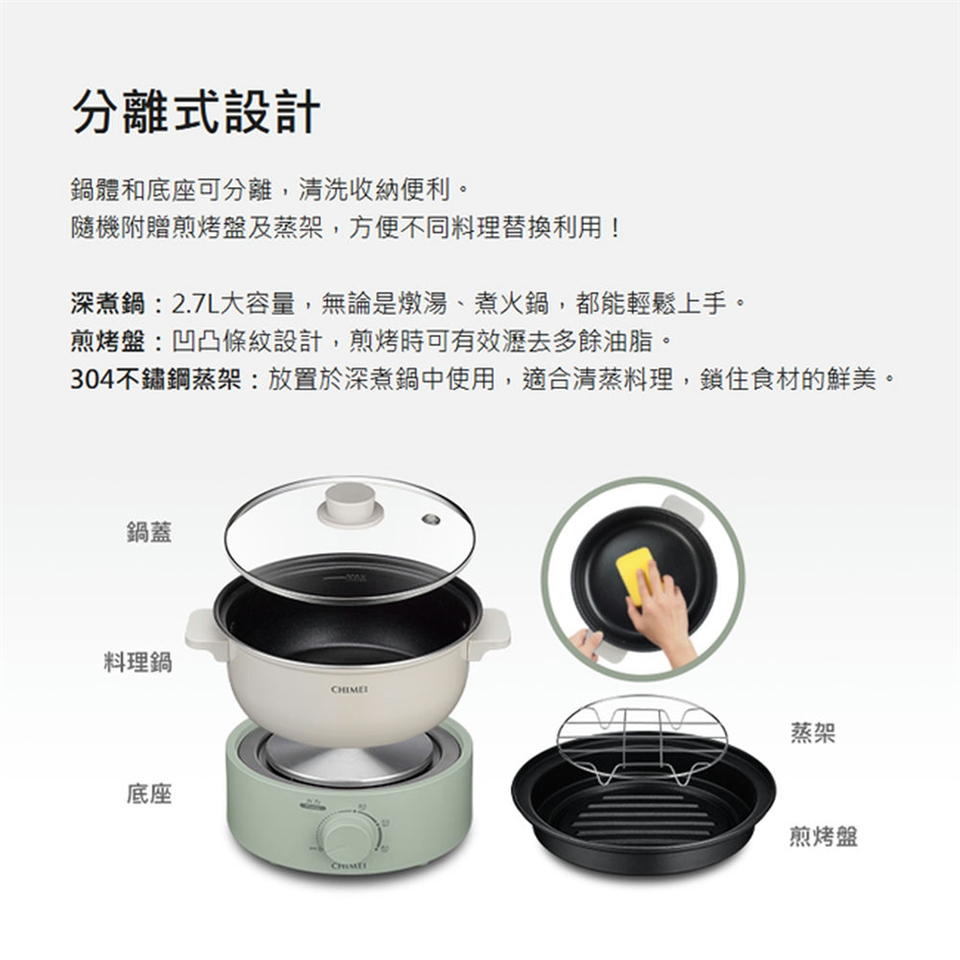 產品附件:料理鍋、不沾煎烤盤、304不鏽鋼蒸架