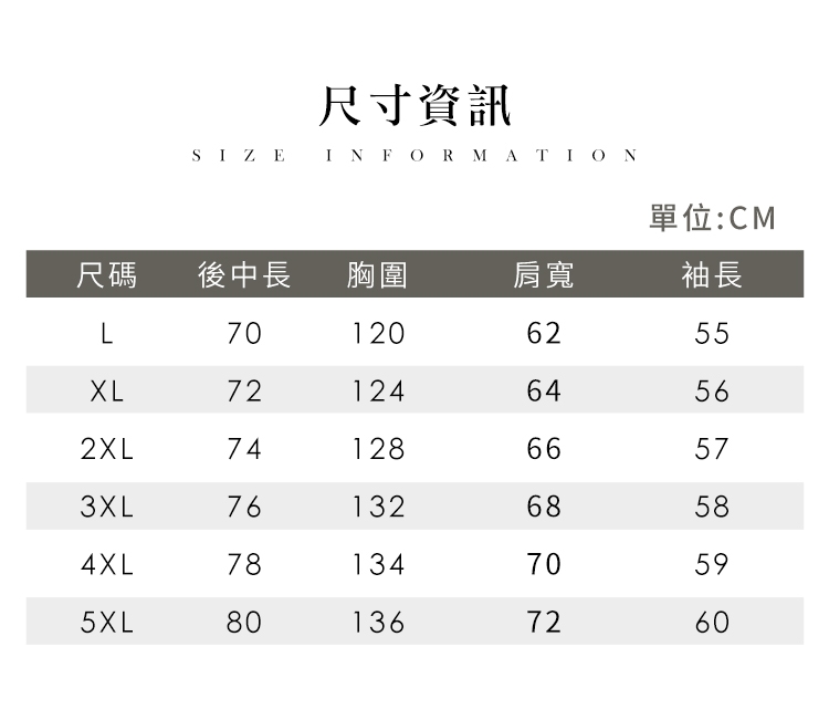 ●尺碼:L/XL/2XL/3XL/4XL/5XL