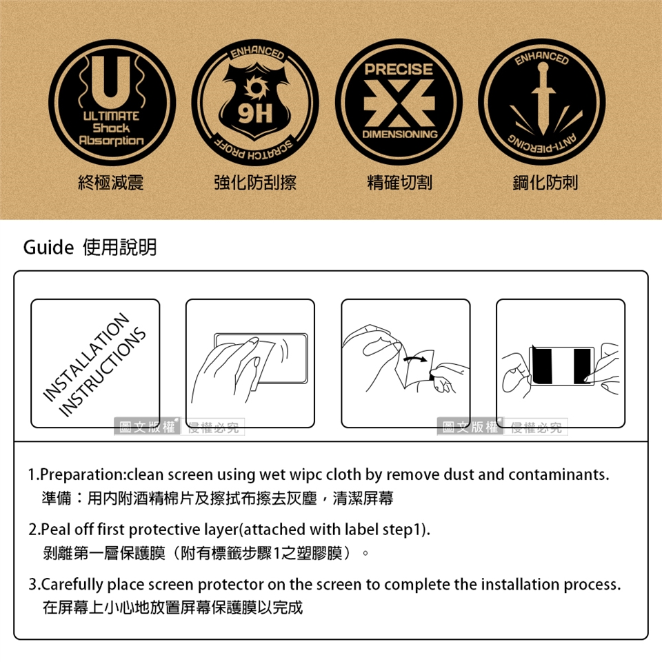 保護貼屬一次性商品,請務必先比對手機、平板孔位、大小是否符合需求,再行使用;如底膜撕除後恕無法進行退換貨處理。