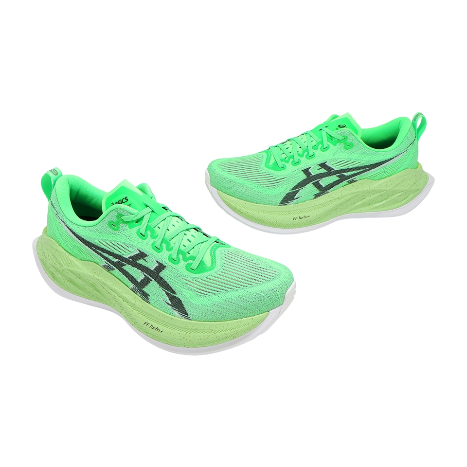* SUPERBLAST 2 EKIDEN 主題配色,致敬日本盛大的接力賽事,配色採用具速度感且象徵希望的新芽綠,中底金黃色的噴霧代表每一位跑者都散發耀眼的光芒。