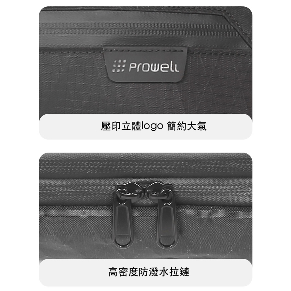 簡約時尚外觀: 有經典黑色,灰色跟時尚綠色可選 壓印立體PROWELL Logo,簡約大氣