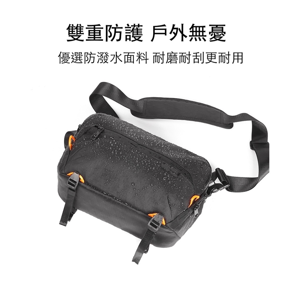 雙重保護,戶外無憂: 精選防潑水聚酯纖維面料,耐磨、耐刮,戶外使用更安心 採用高密度防潑水拉鍊,加強防護,有效阻擋水氣滲入