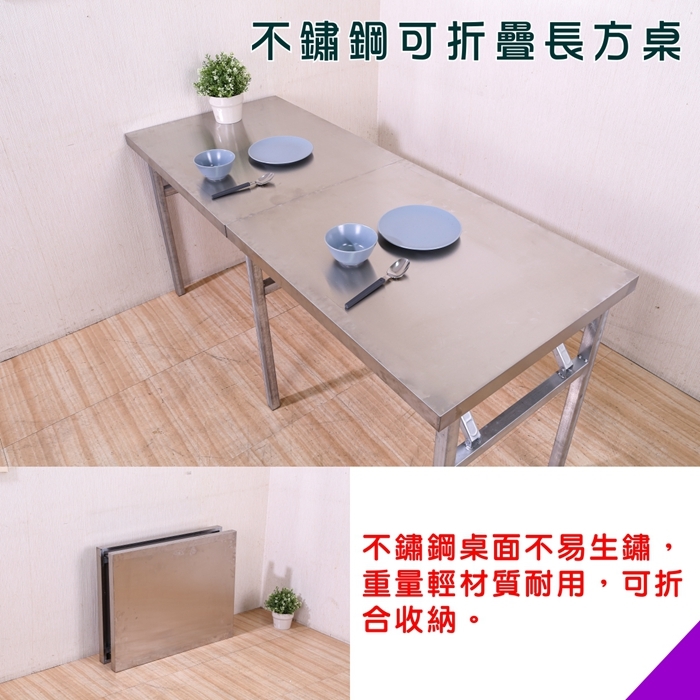 ‧商品名稱:《DFhouse》伯格-不鏽鋼長方摺疊桌組(1桌4圓凳)