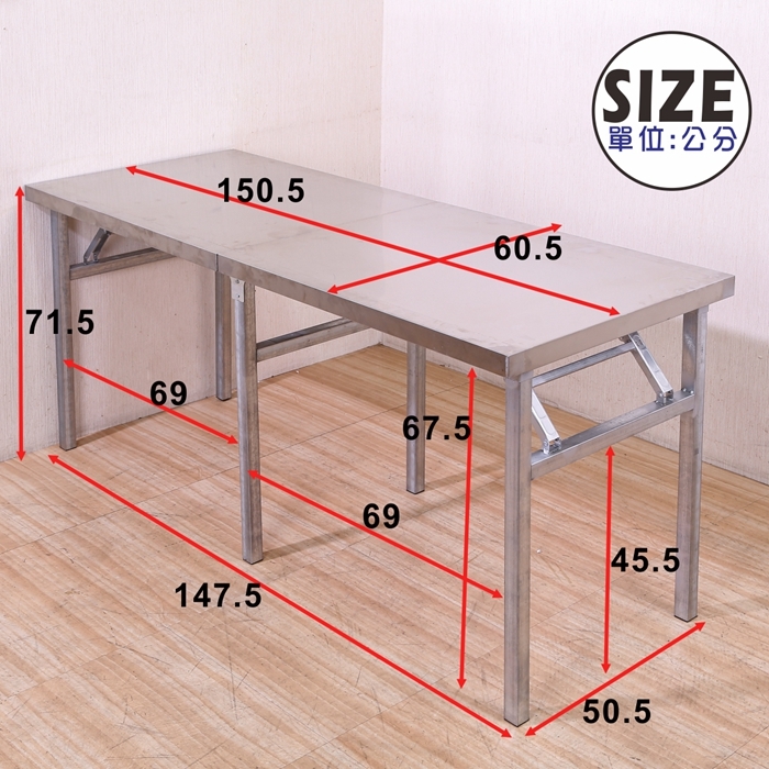 ‧材質:不鏽鋼桌面 鐵管烤漆腳