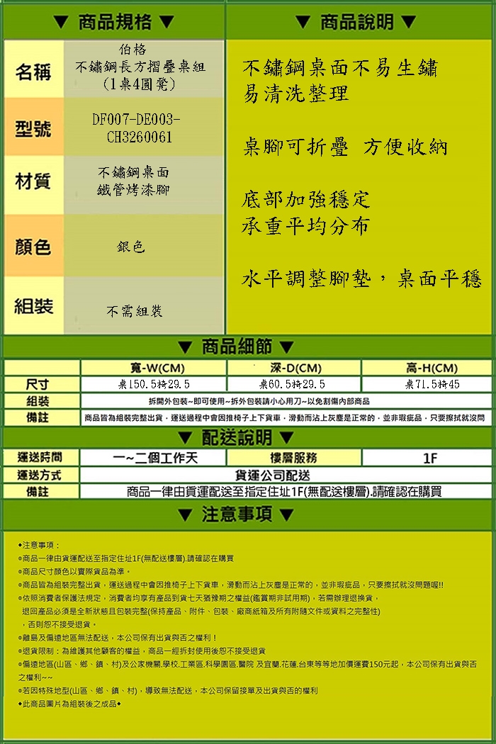 ‧尺寸:桌:寬150.5* 深60.5* 高71.5 CM