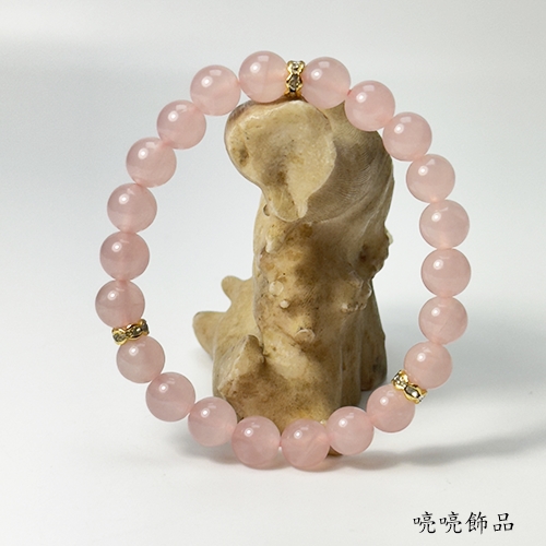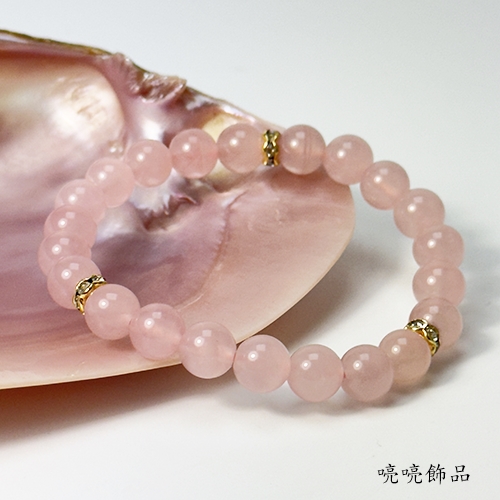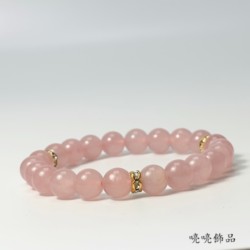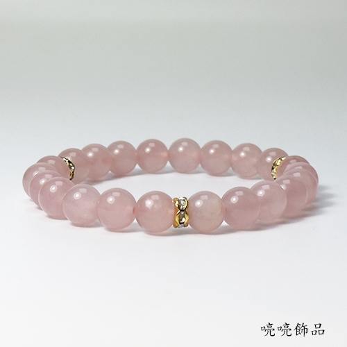 愛情寶石3A 8mm粉晶/金色波浪水鑽 手鍊