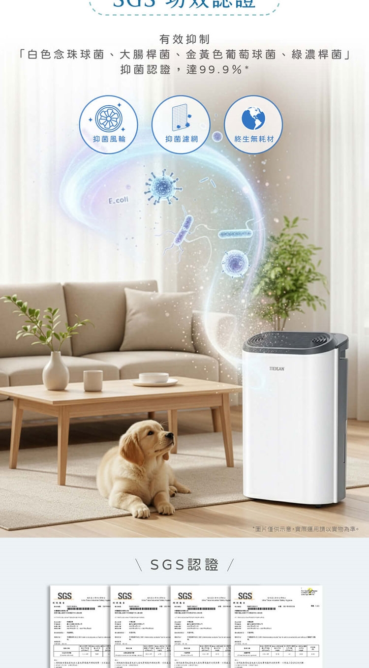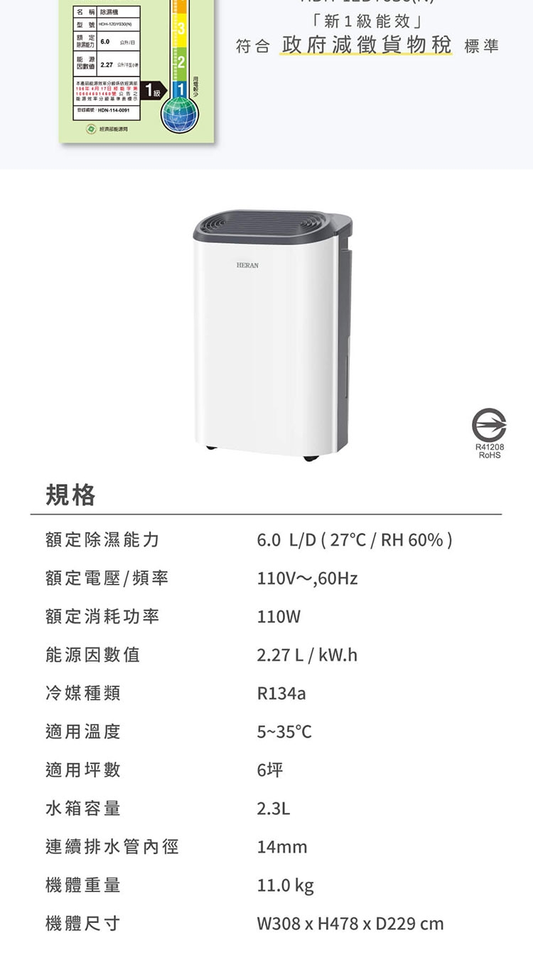 ◎ 除濕能力:6 L/日 (27℃/RH60%)