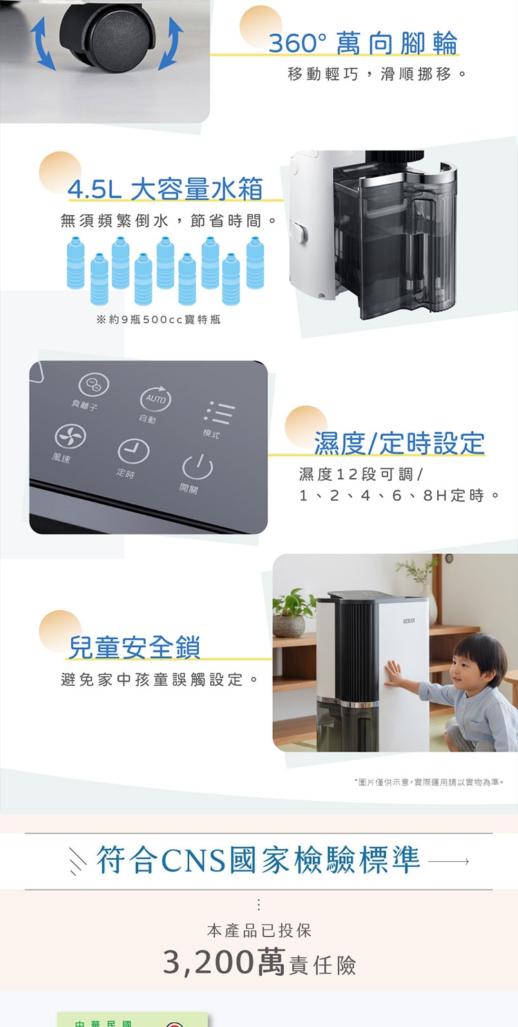 ◎ 除濕能力:12 L/日 (27℃/RH60%)