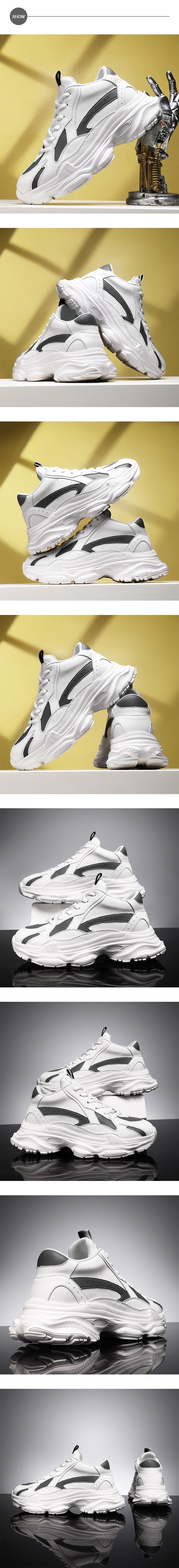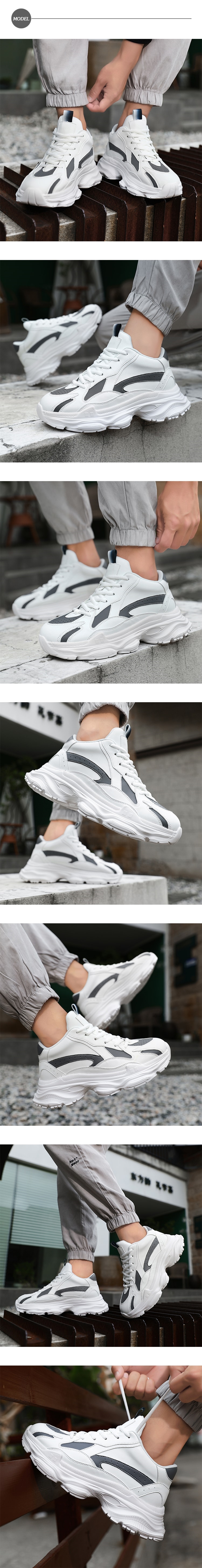 【NO SUB】拼接厚底休閒運動鞋/異材質拼接舒適高彈力厚底休閒運動鞋 男鞋 白