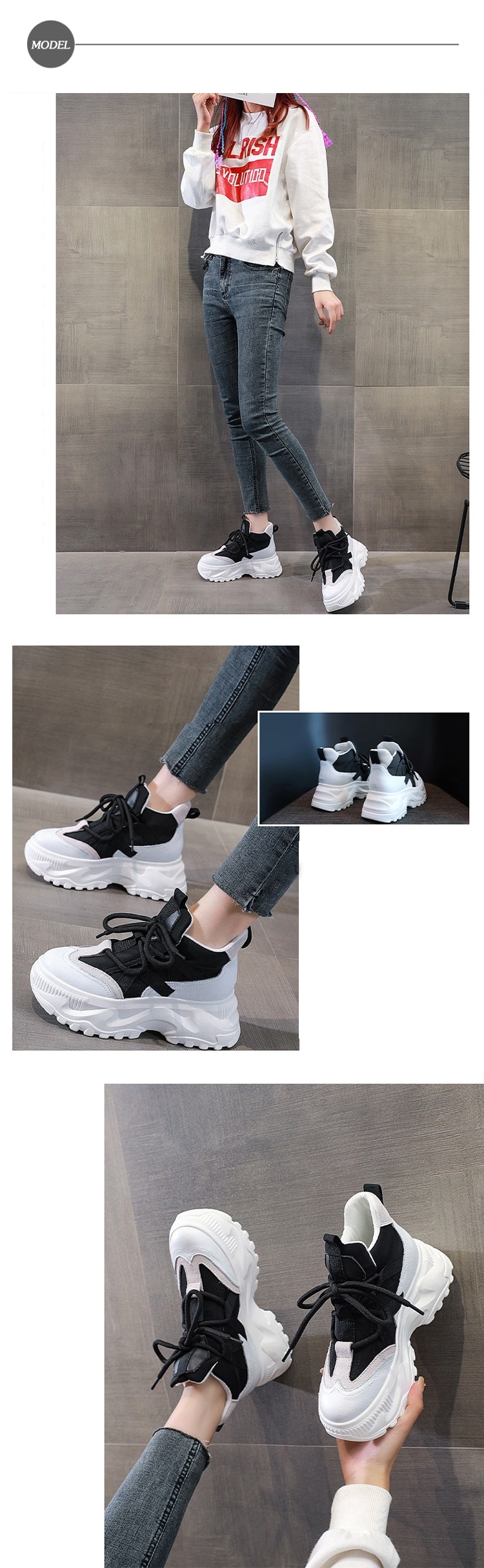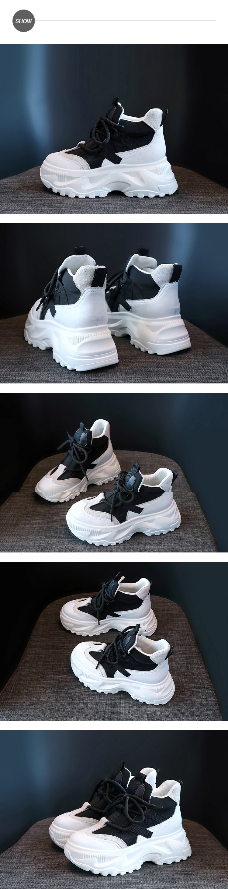 【HMH】真皮撞色內增高休閒鞋/真皮異材質拼接撞色厚底美腿效果內增高休閒鞋 男鞋 白黑