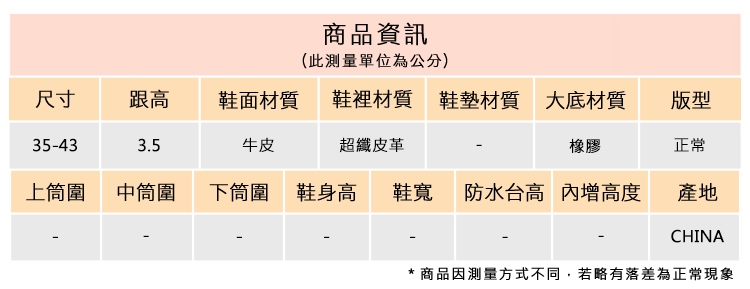 2.鞋類商品依功能及用途之不同,鞋底各有其止滑係數之個別不同,使用鞋類商品請用於正常平坦之路面,非雨鞋或雨靴類商品,請避免穿著於下雨濕滑路面上行走。