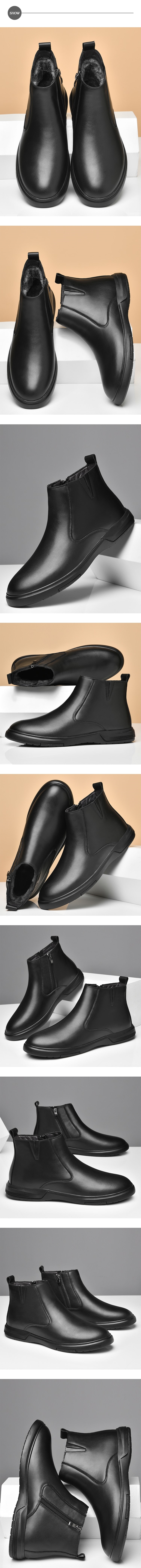 【ANSEL】真皮平底切爾西短靴/真皮頭層牛皮舒適平底切爾西短靴 男鞋 黑