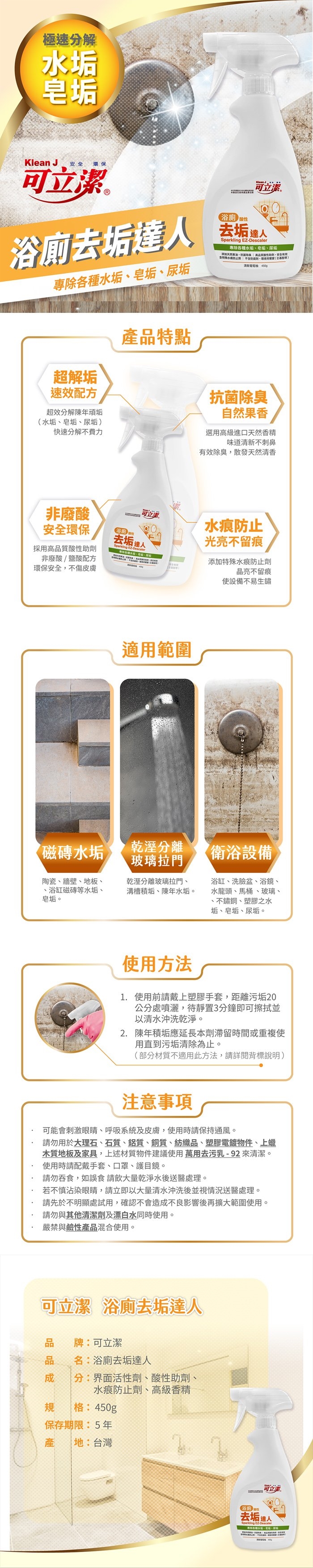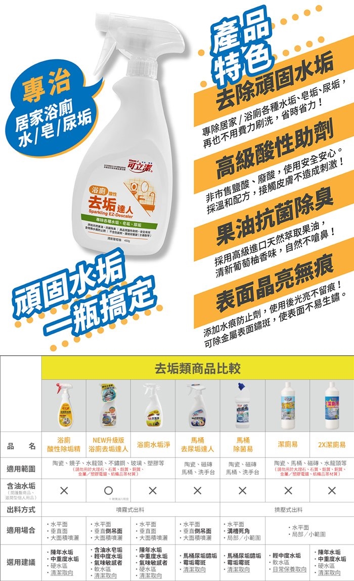◆ 去除水垢皂垢尿垢 抗菌除臭 晶亮無痕