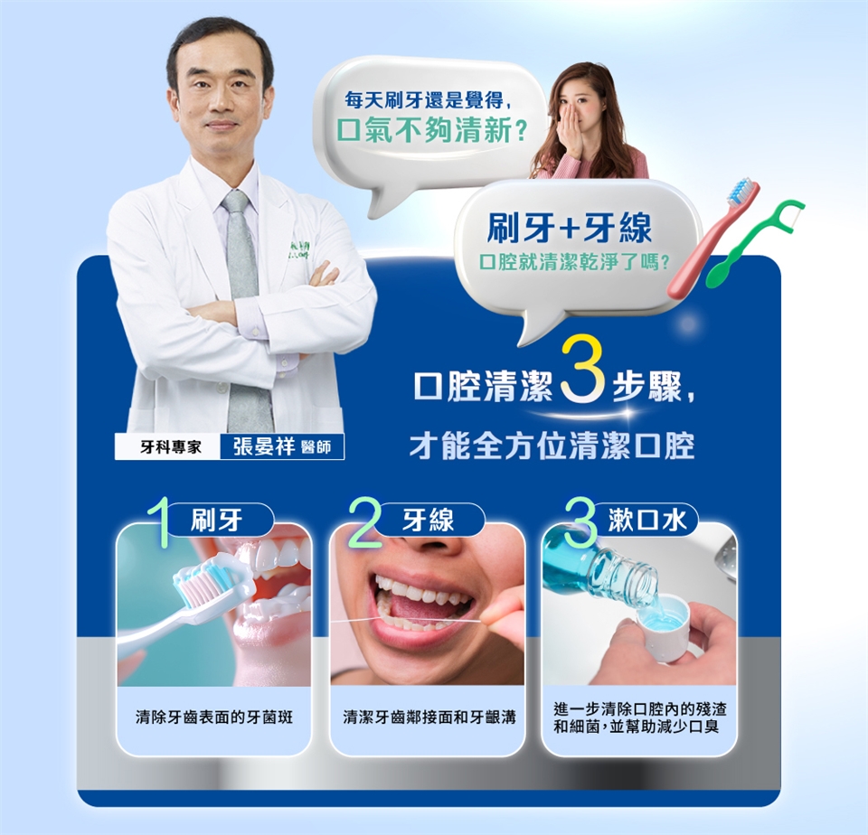使用方法:每日2~3次作為口腔清潔步驟之一,每次20ml(約1/2瓶蓋),漱口約30秒,漱遍牙齒及牙齦之口腔全部位後吐出,不需再以清水漱口。