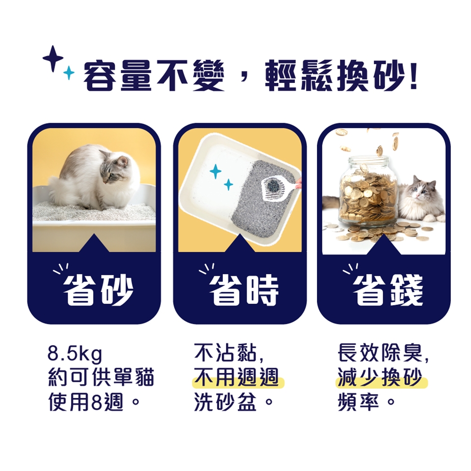 3.清除結塊後,請補充新的貓砂,維持厚度約7-10公分。
