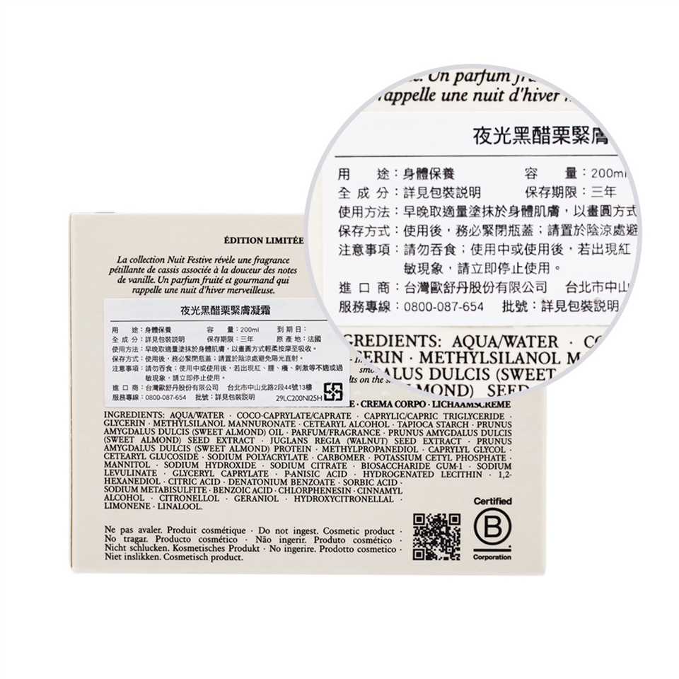 中文品名:L'OCCITANE 歐舒丹 夜光黑醋栗緊膚凝霜(200ml)
