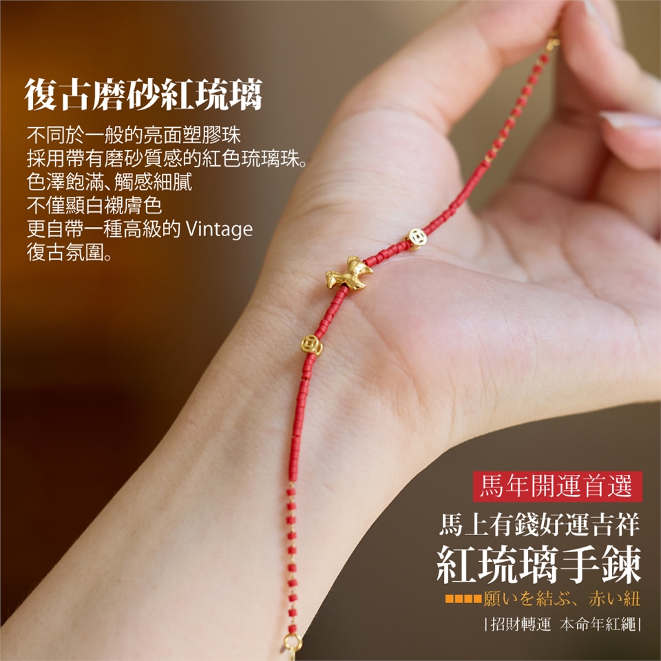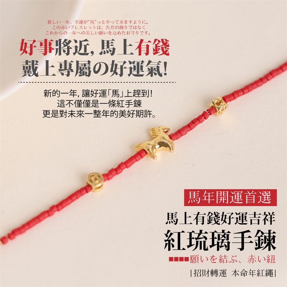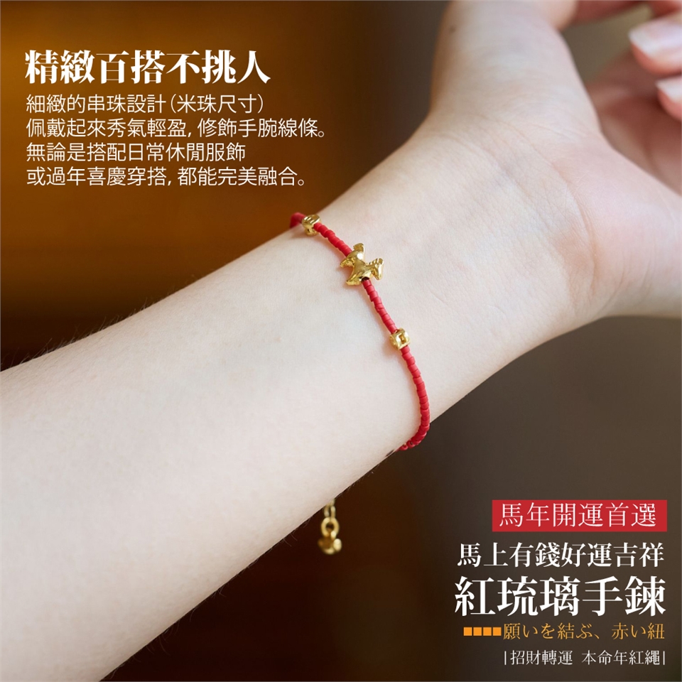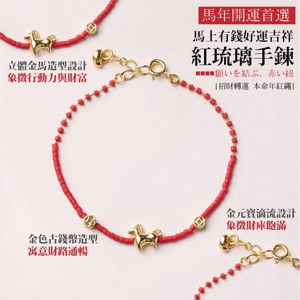 無論是本命年需要紅繩護身,或是想要在新的一年招財納福,這款手鍊都是您最精緻的幸運符。