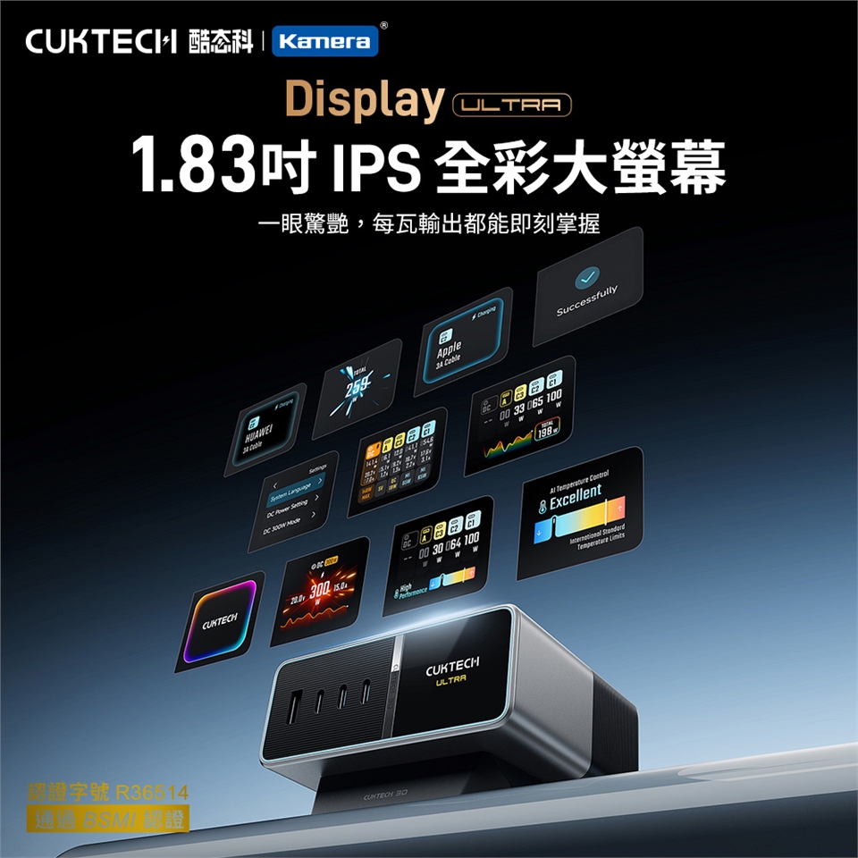 - 彩色動態顯示螢幕,全新桌面美學革命!即時顯示各孔功率、電壓、充電狀態,從此充電不再是無聊的機械動作,而是一場視覺盛宴。螢幕跳動的數據,像掌握所有設備的能源地圖,讓充電器成為桌面上的科技展示窗。