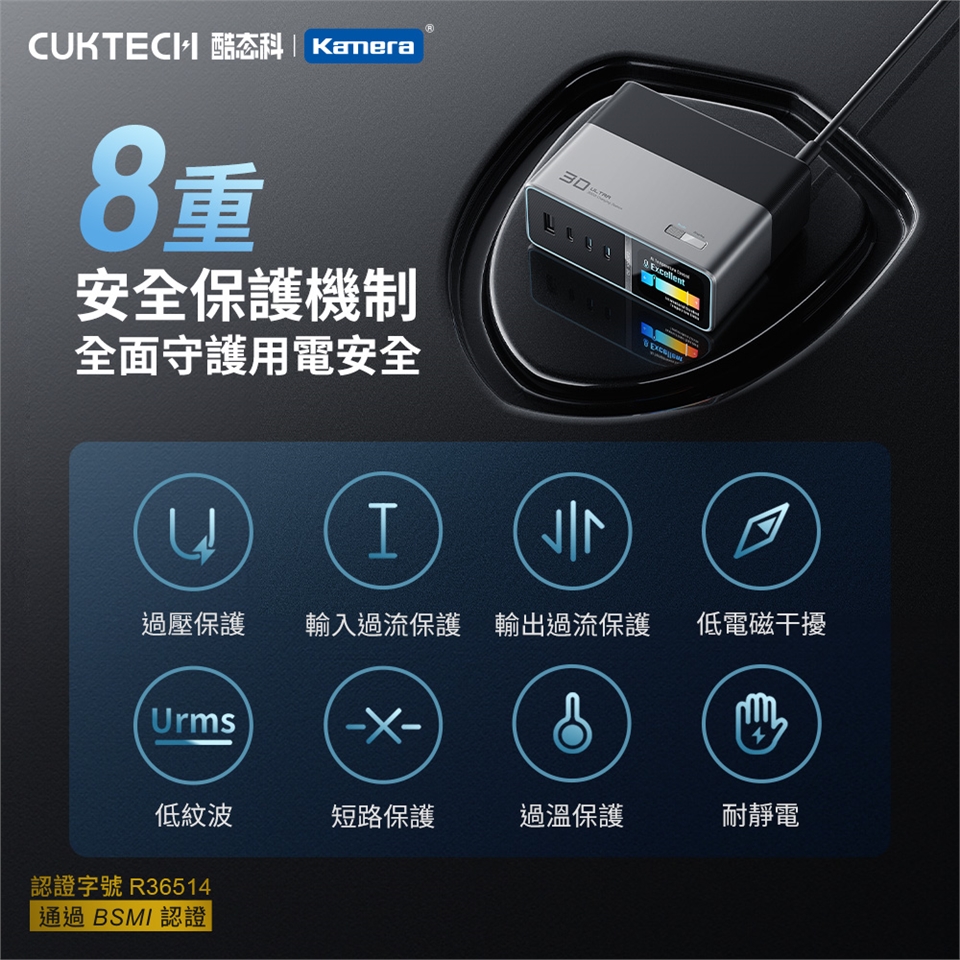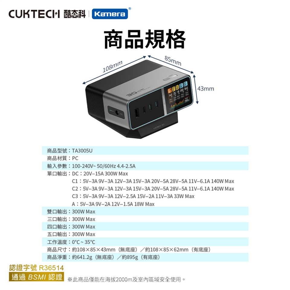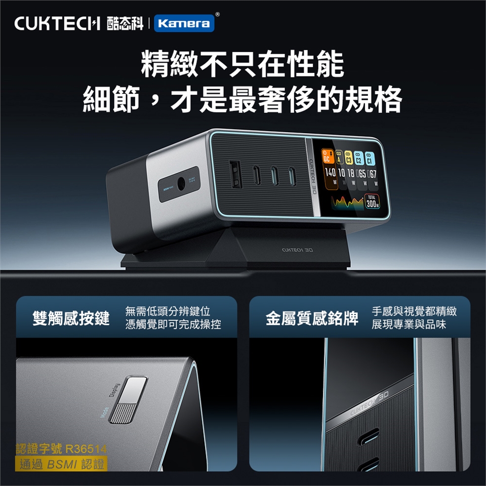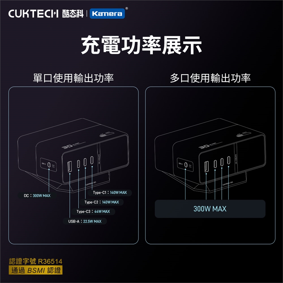- 通過台灣 BSMI 認證(經濟部標準檢驗局的安全認證),具備過壓、過流、過溫、短路保護等……,300W全速運行也穩定安全,充得痛快,用得安心!