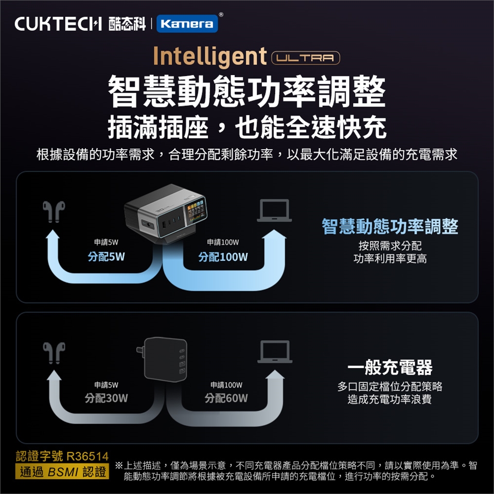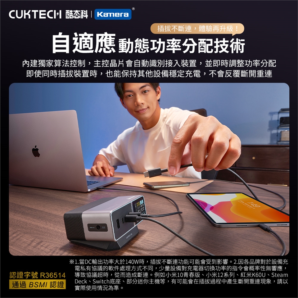 - 智慧動態功率分配,插拔不中斷。自研功率分配算法即時調整輸出,換線、插新設備不會影響其他裝置充電。你感覺不到斷電,因為它穩得像主機供電。