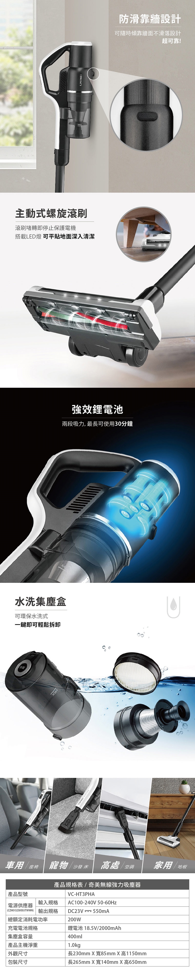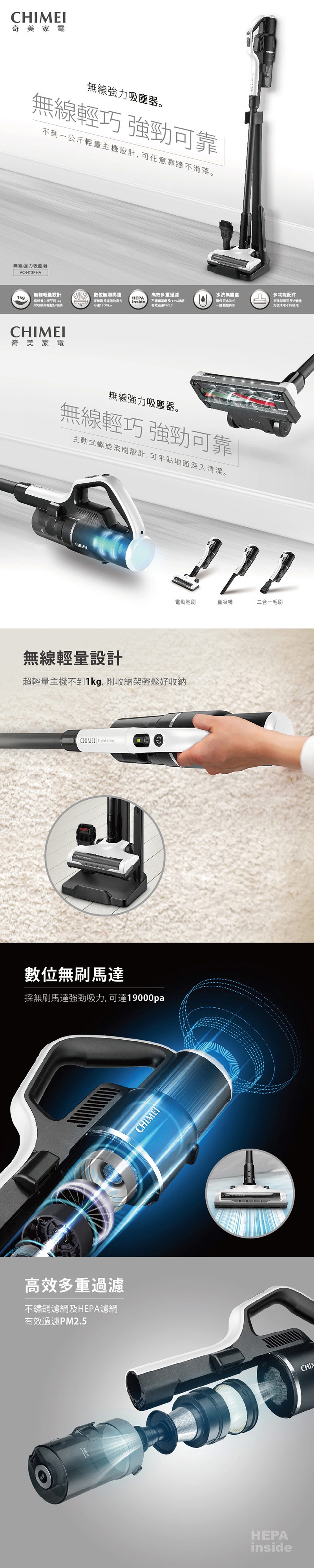 ◆不到1Kg超輕量主機+無線設計,掃除更輕鬆。