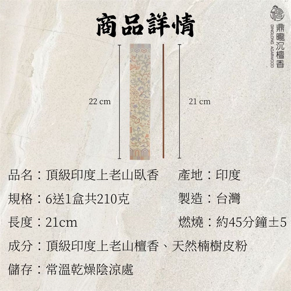 品名:頂級印度上老山臥香 6盒組送1盒|210克