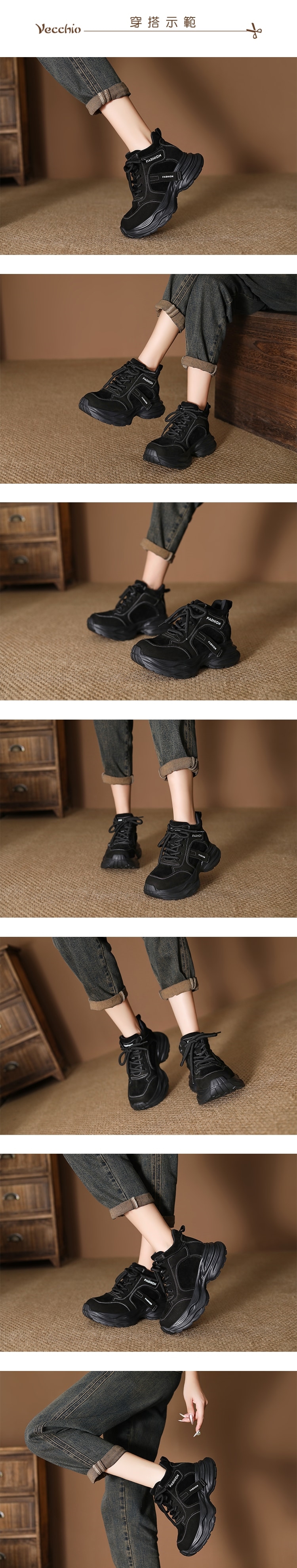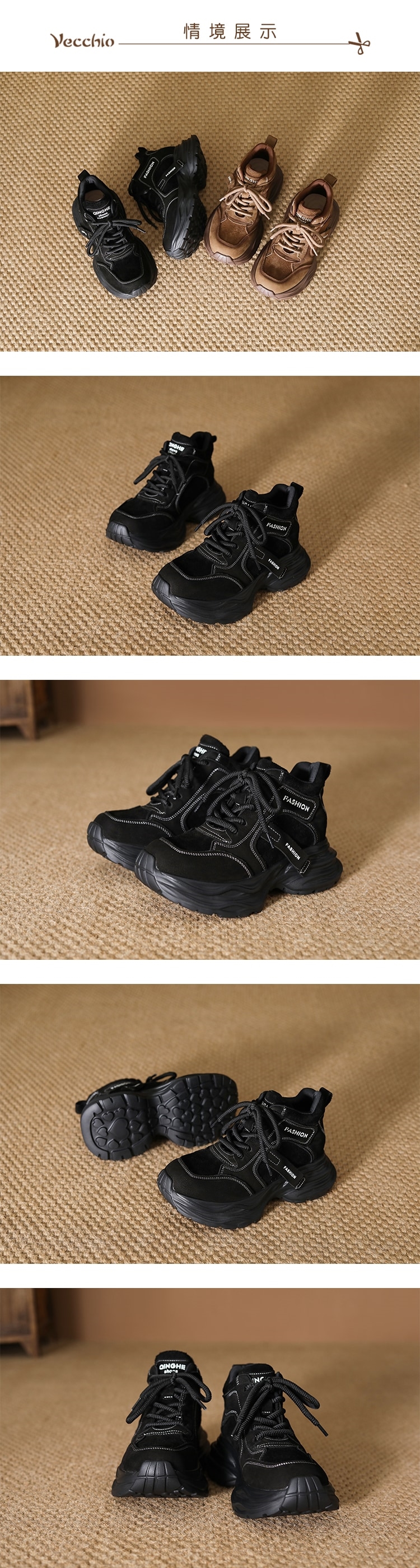 【VECCHIO】真皮厚底休閒運動鞋/真皮頭層牛皮百搭休閒復古厚底休閒運動鞋 女鞋 黑