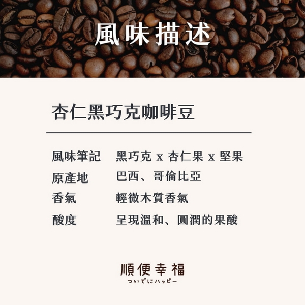 順便幸福-好鈣浸泡咖啡-杏仁果黑巧克-規格說明: