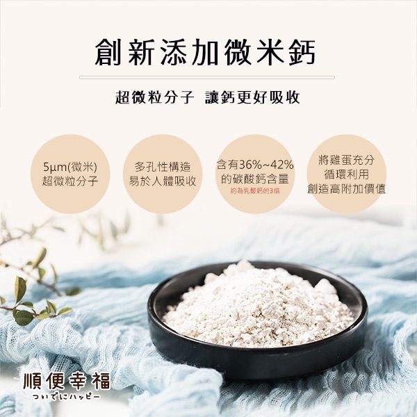 添加來自蛋殼的微米級鈣粉,溫和好吸收