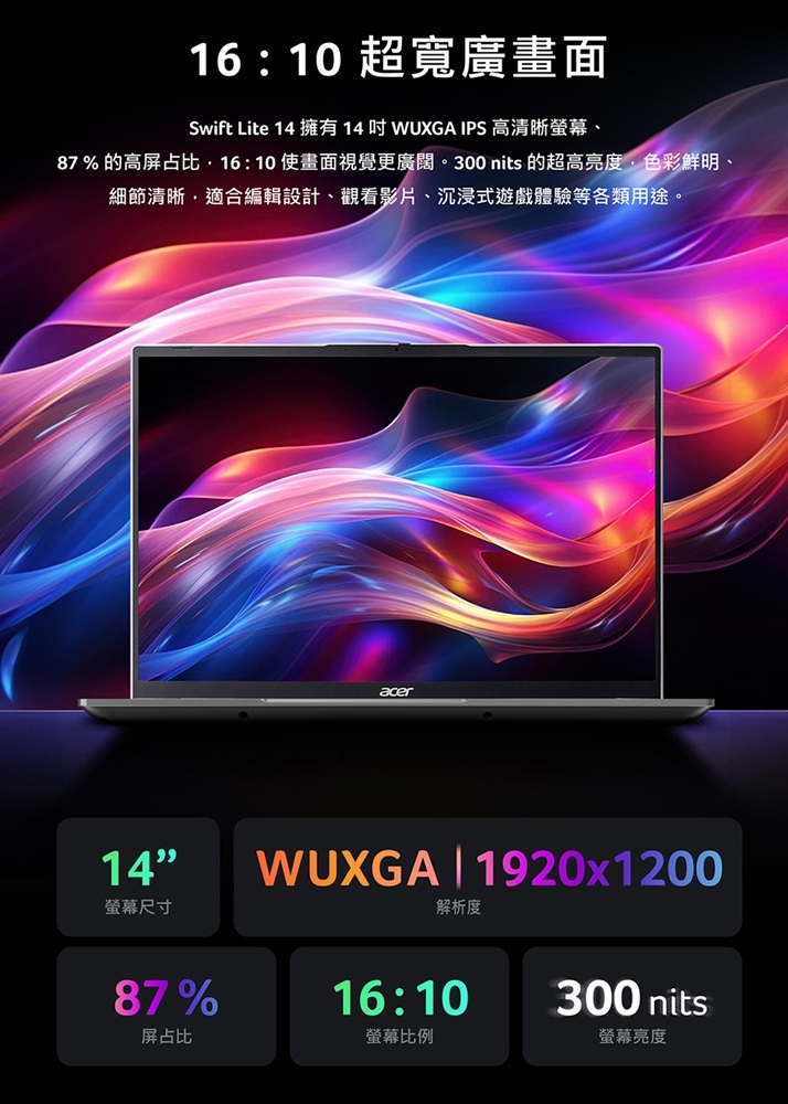 尺寸/規格:14.0" IPS/16:10/霧面/LED背光