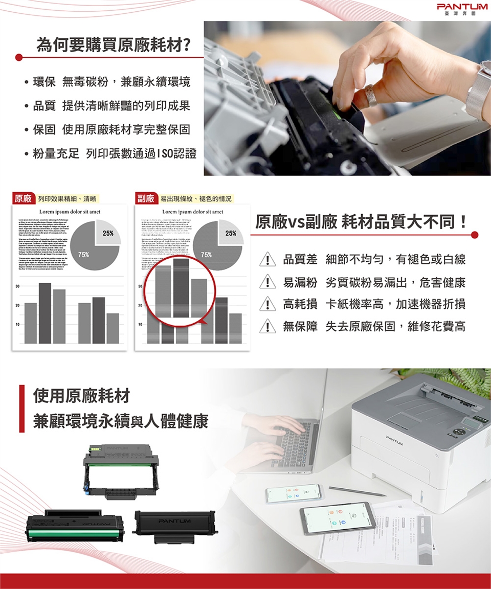 為了確保您的列印品質及可長久保存,建議您使用原廠耗材。