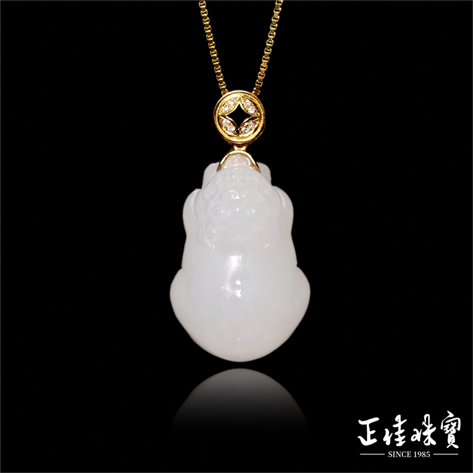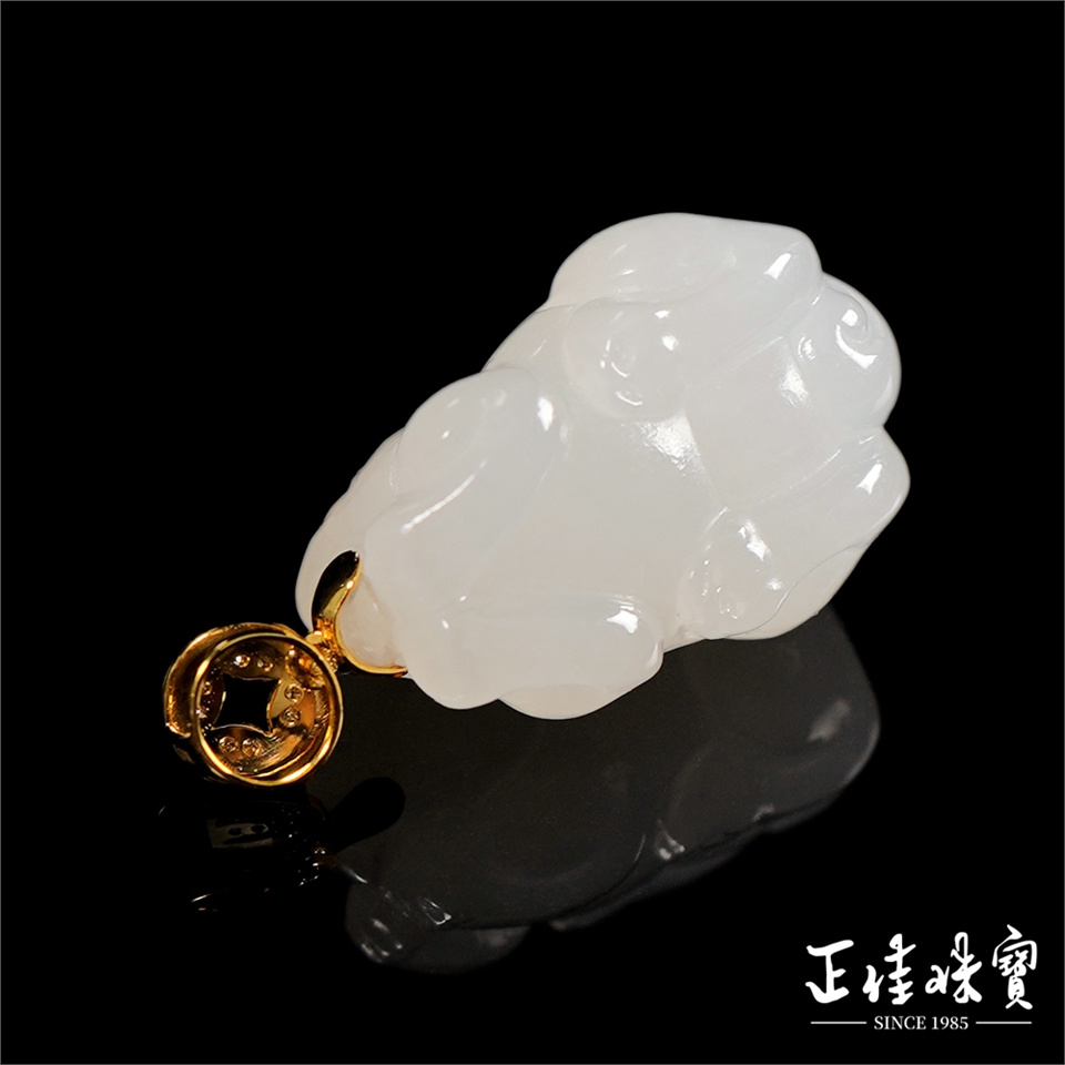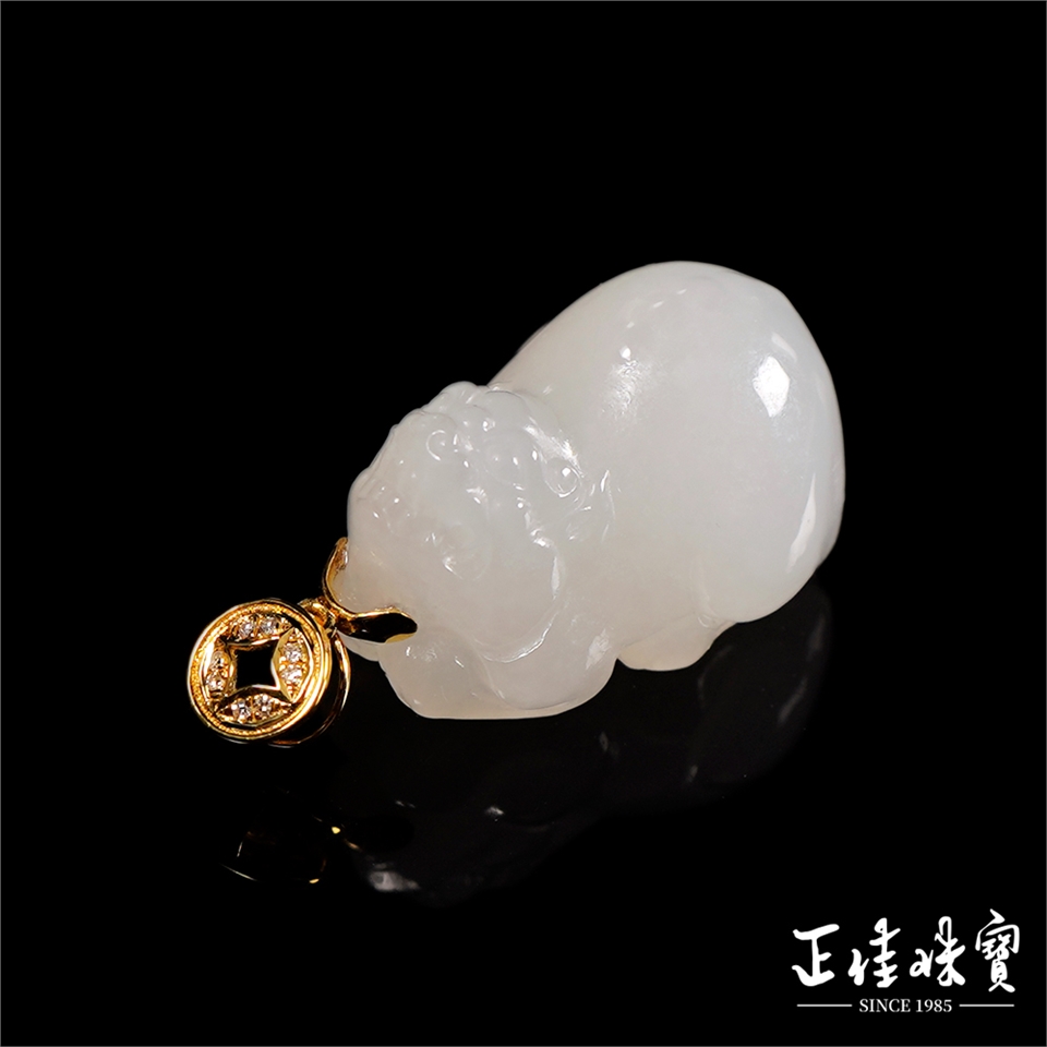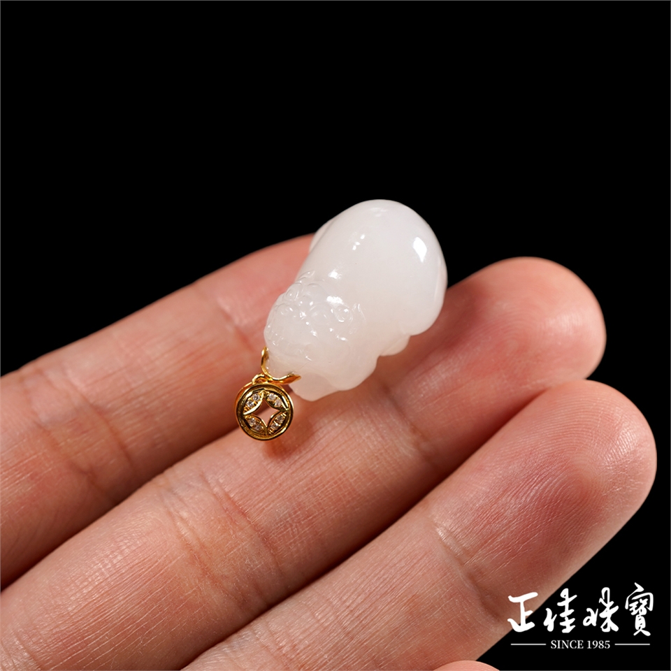 和田白玉 頂級新疆老礦籽料 7.8g 白玉貔貅 和田白玉吊墜|18K金鑽石