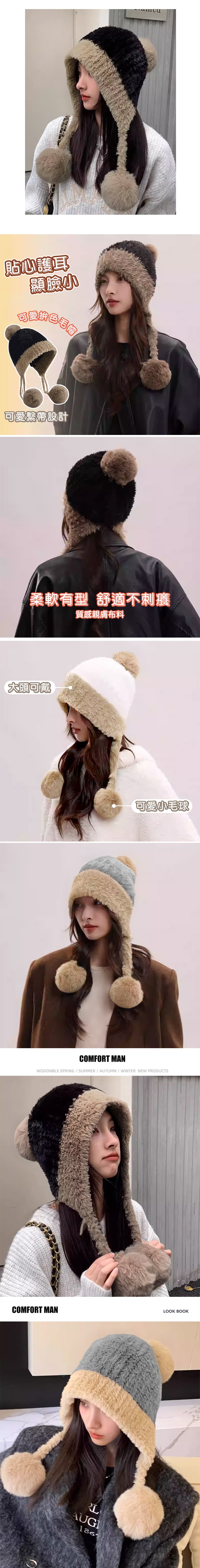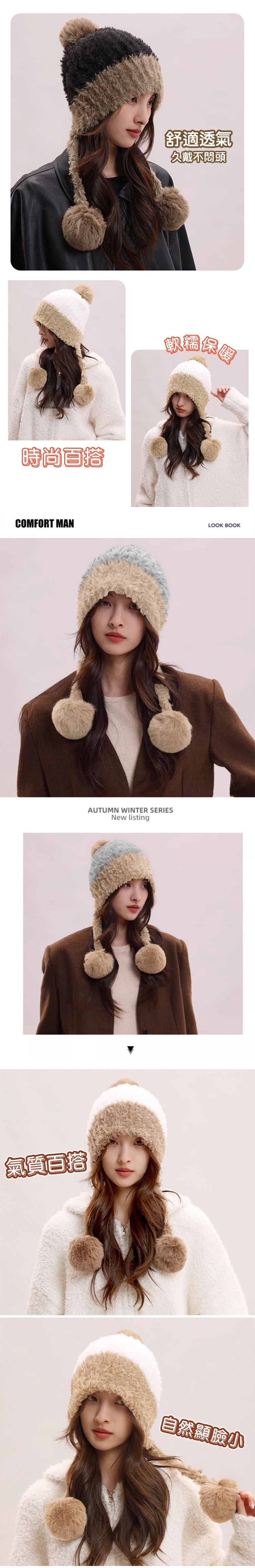 #熱銷款仿羊絨秋冬款球球帽,護耳時尚厚實保暖!
