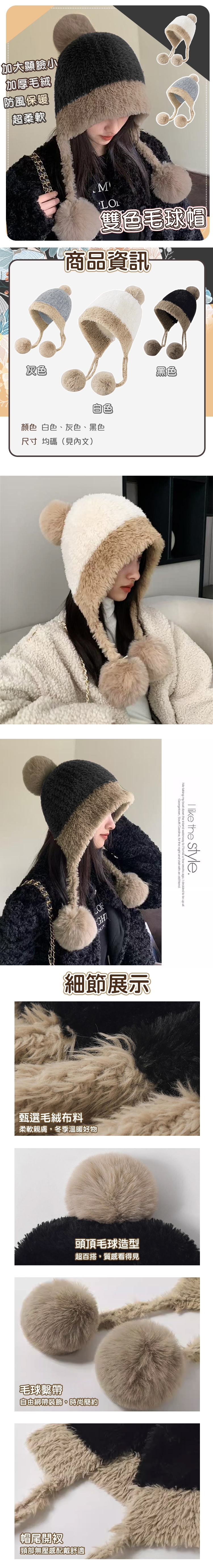 商品名稱:超柔軟加厚毛線雙球保暖帽-2HD /帽子 毛線帽 毛帽 冬天帽 球球帽 漁夫帽子女 遮陽帽