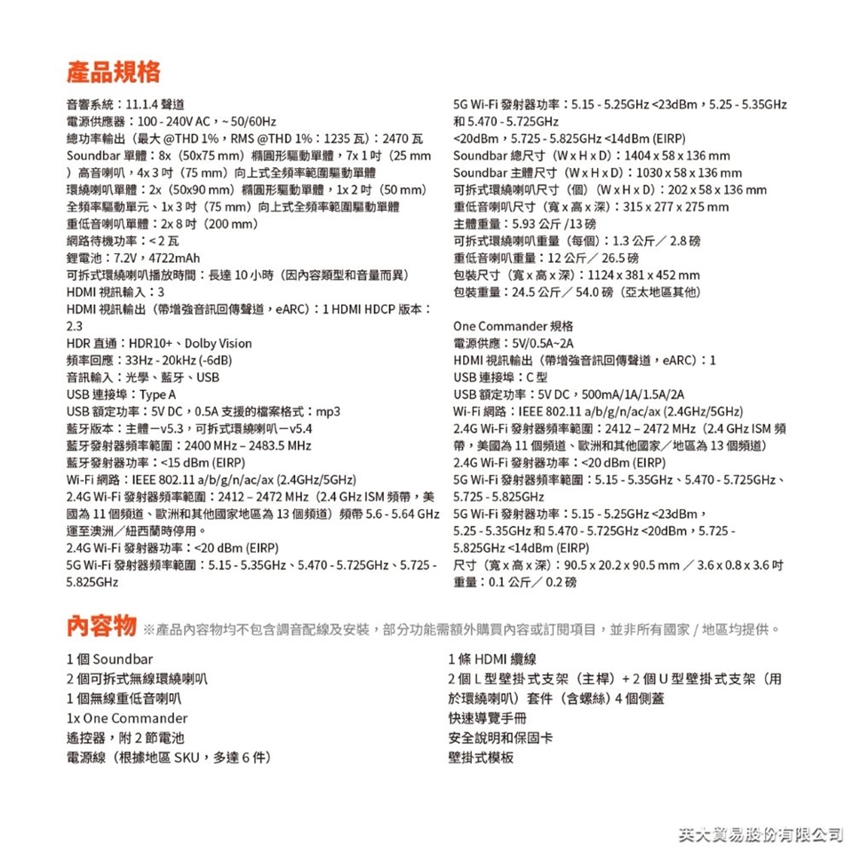 ●兩顆無線喇叭總出力160W