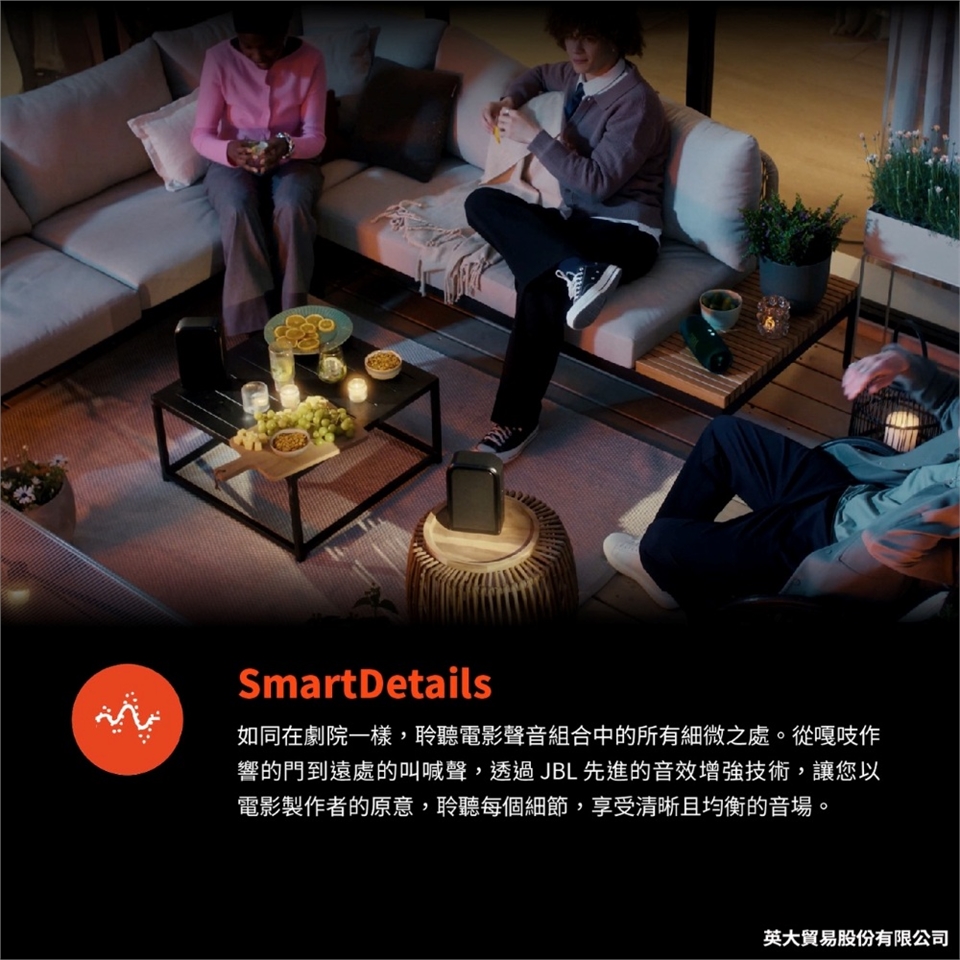 ●8吋雙單體重低音帶來更廣闊的低頻表現,並搭載AI Sound Boost,釋放震撼能量