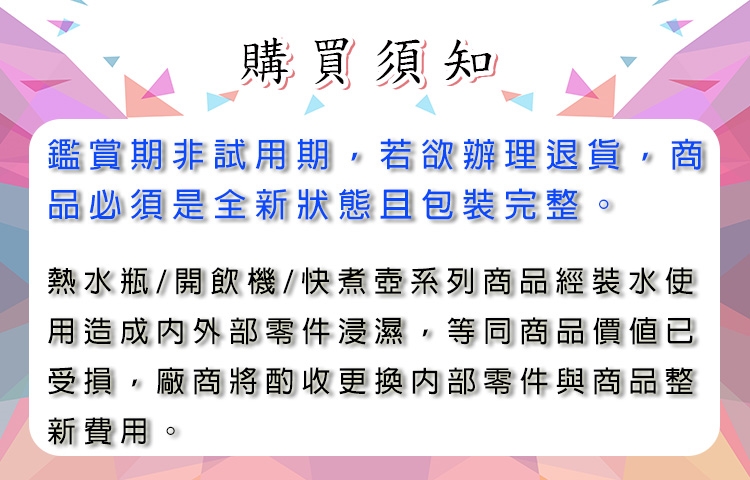 ★商品一經拆封或使用,等同商品價值已受損,僅能以福利品出售,若非商品本身瑕疵而需退換貨,須收取價值損失之費用(回復原狀、整新費、安裝配送費等,約商品售價的10~30%不等之費用),請先確認訂購商品無誤,再行開機/使用,以免影響您的權利,祝您購物順心。(如原廠判定為人為損壞,本公司有權拒絕退換貨申請)