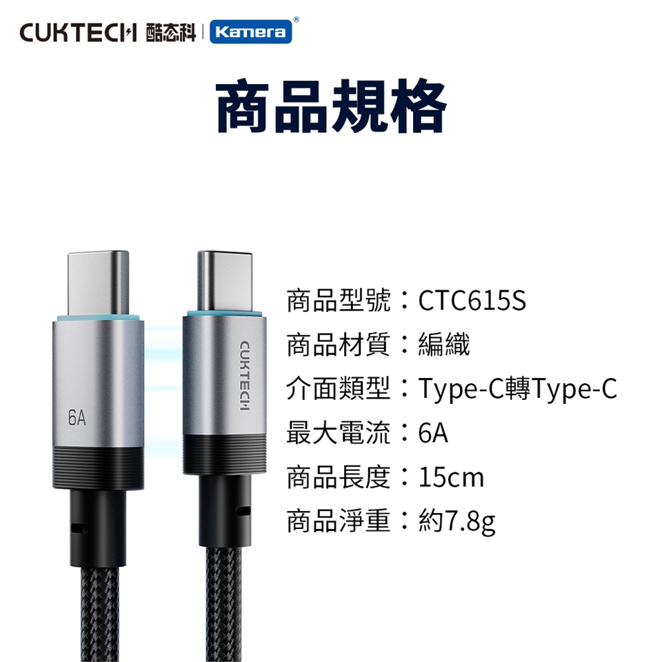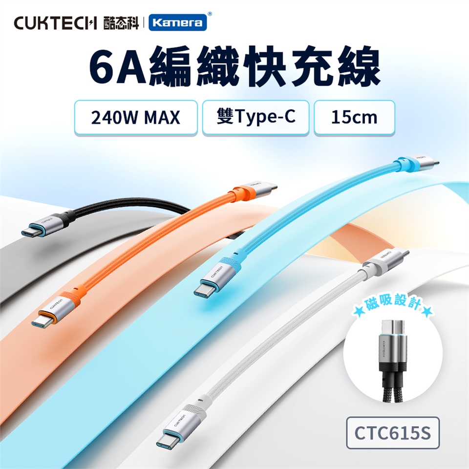 包裝內容:編織快充線 6A 黑色 (15CM)×1