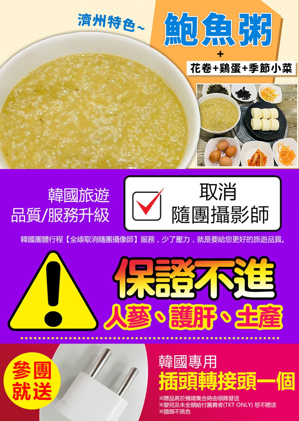 ※觀光旅遊團不接受跑單幫客、韓國華僑、旅遊期間脫隊,若有以上情形皆另加收費用NT$8500元。