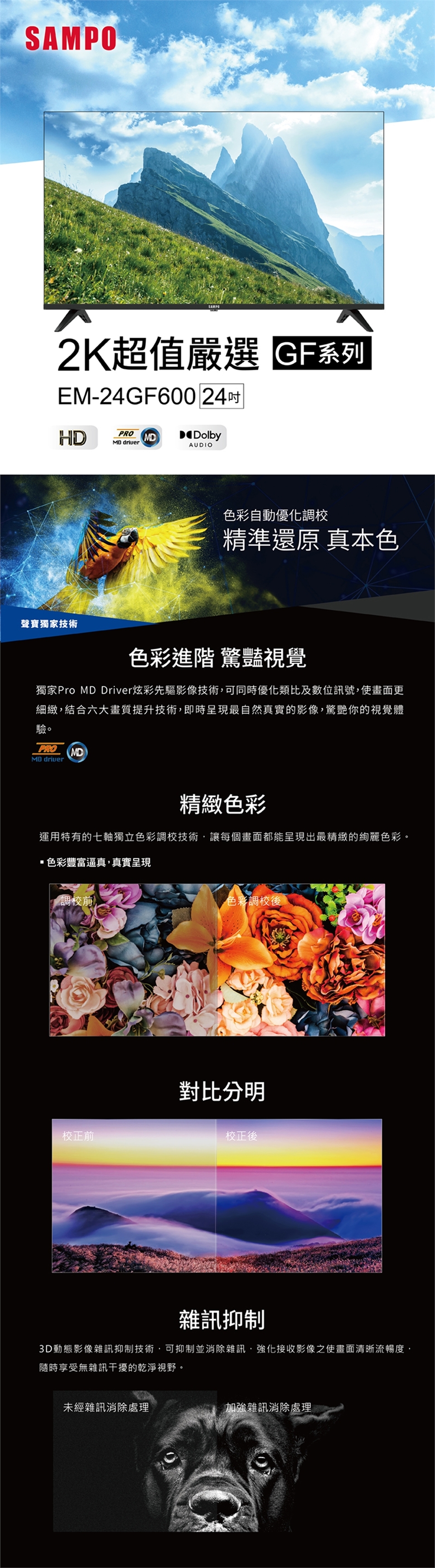 SAMPO聲寶 24型 HD超值嚴選顯示器 EM-24GF600 含視訊盒 送基本安裝+舊機回收