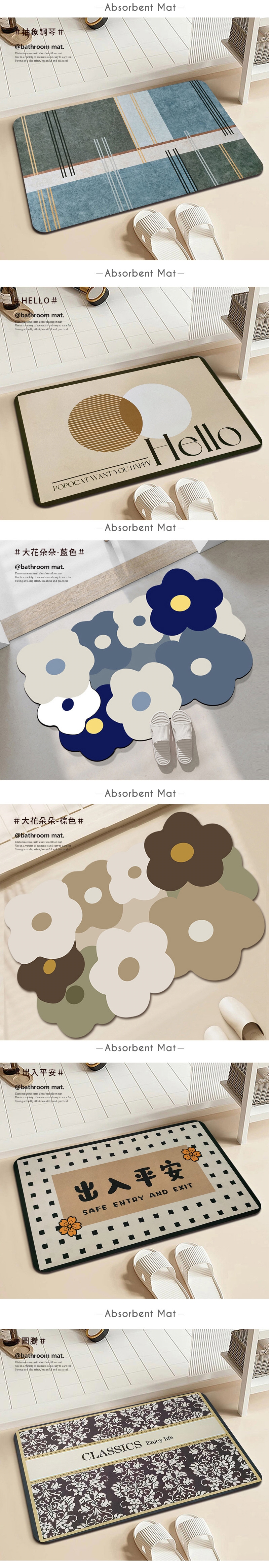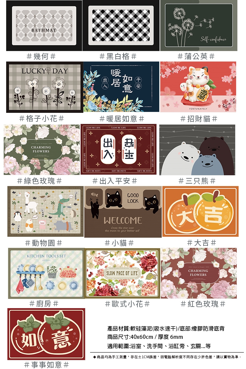 ●重量輕,可摺疊好收納 ● 田園花卉硅藻土吸水軟地墊(多種款式可挑選)