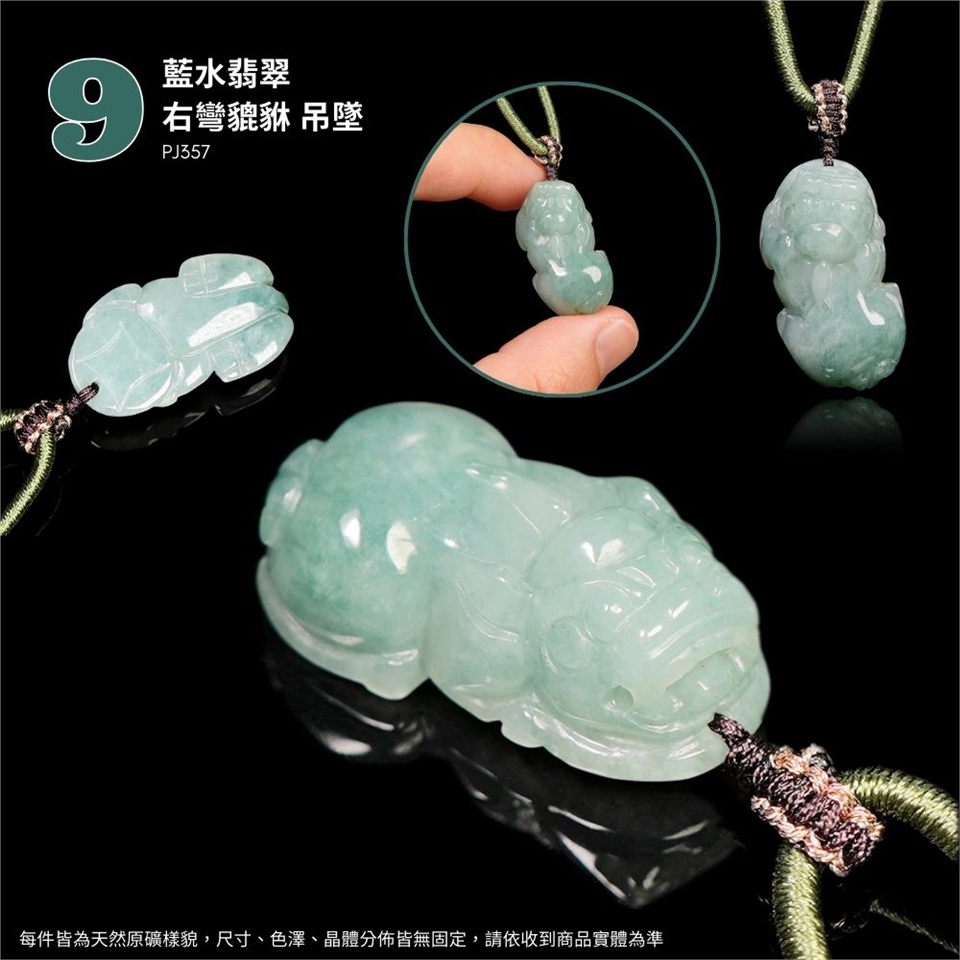 ( 9 ) 主角:藍水翡翠 右彎貔貅 吊墜