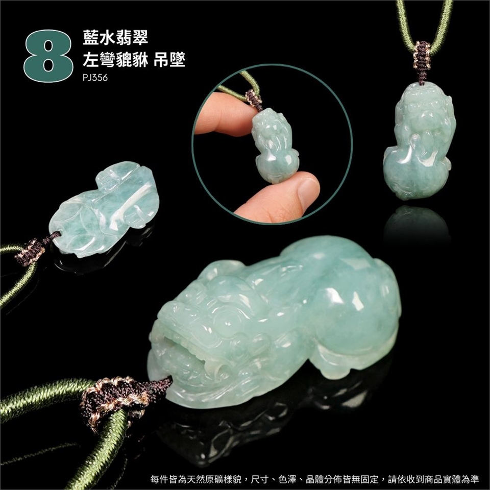 ( 8 ) 主角:藍水翡翠 左彎貔貅 吊墜