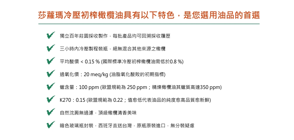 產自百年獨立的自家莊園橄欖,摒除混雜其他產地或品種的橄欖