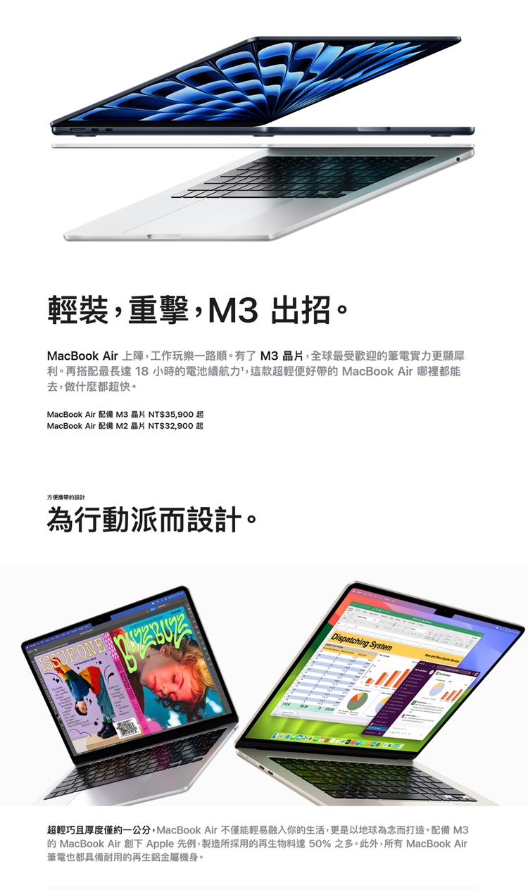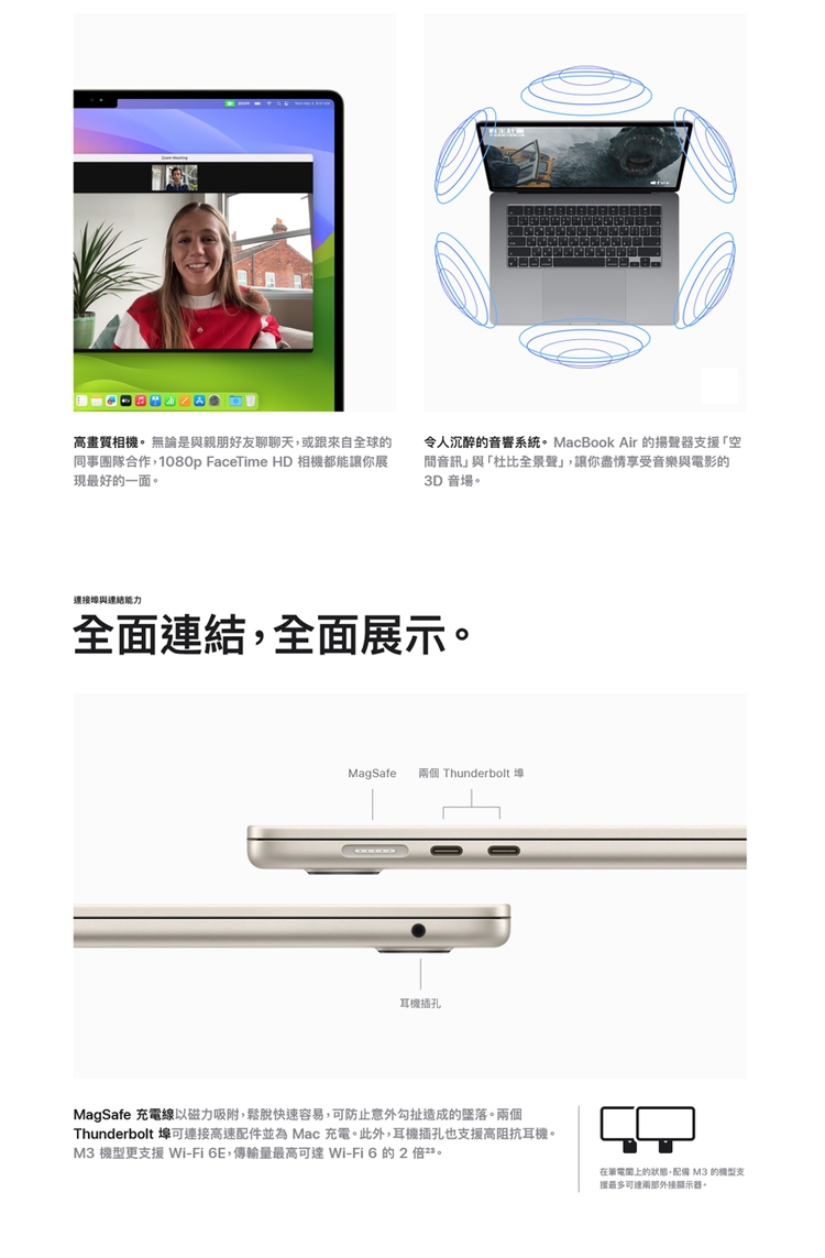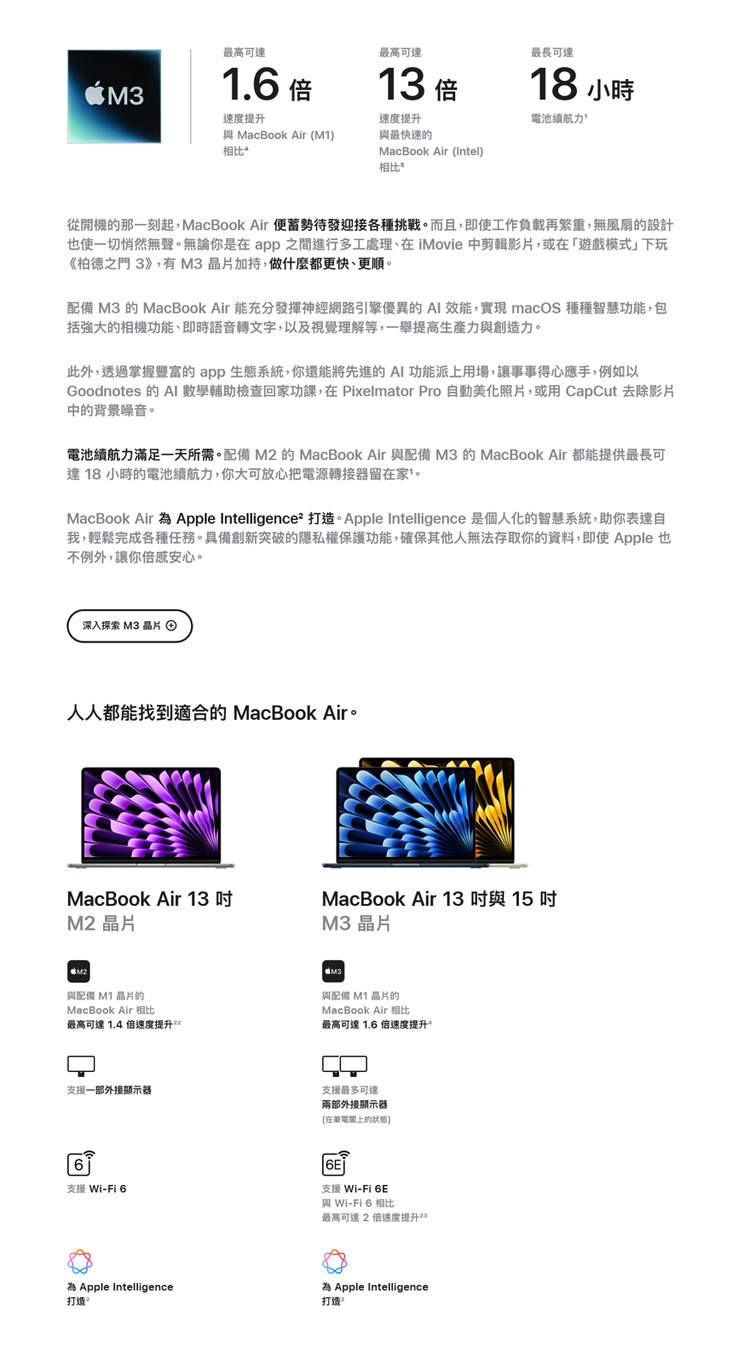 Apple MacBook Air 13吋/M3晶片8核心CPU 8核心GPU/16G/256GSSD