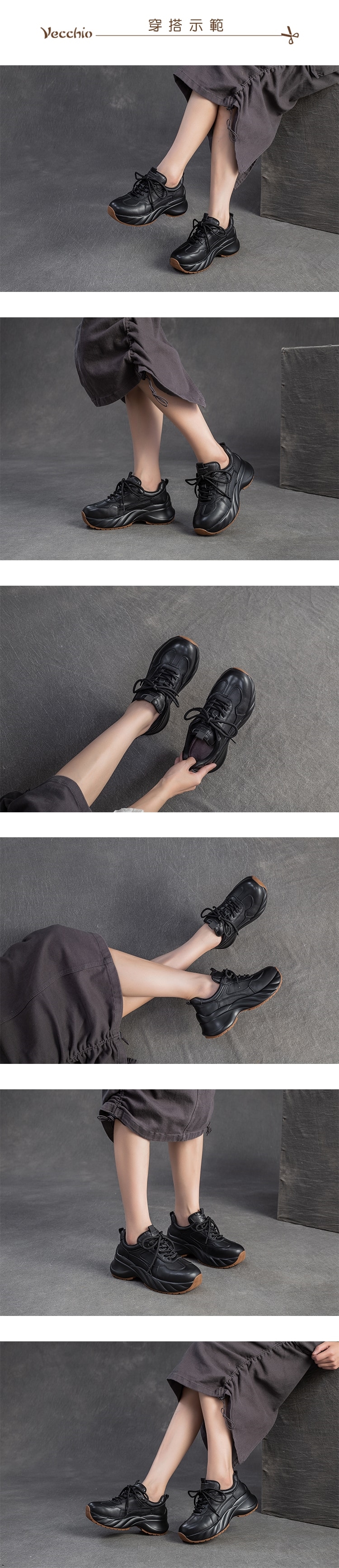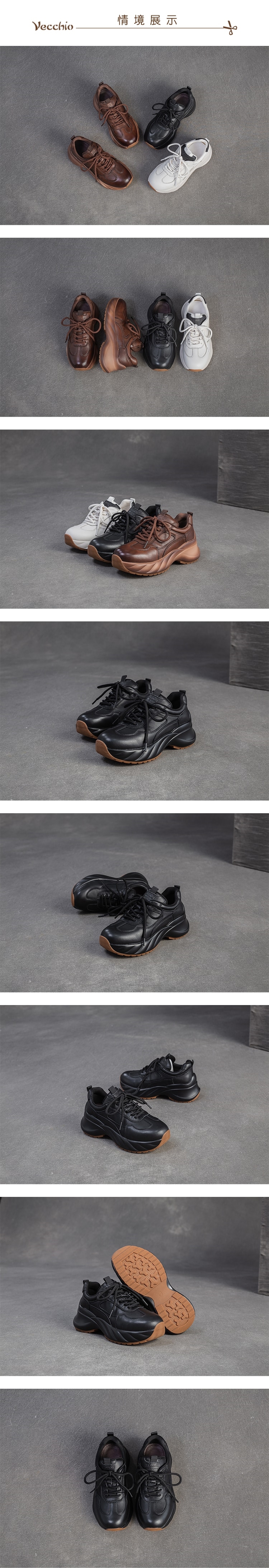 【VECCHIO】真皮純色厚底運動鞋/真皮經典純色百搭復古休閒厚底運動鞋 女鞋 黑