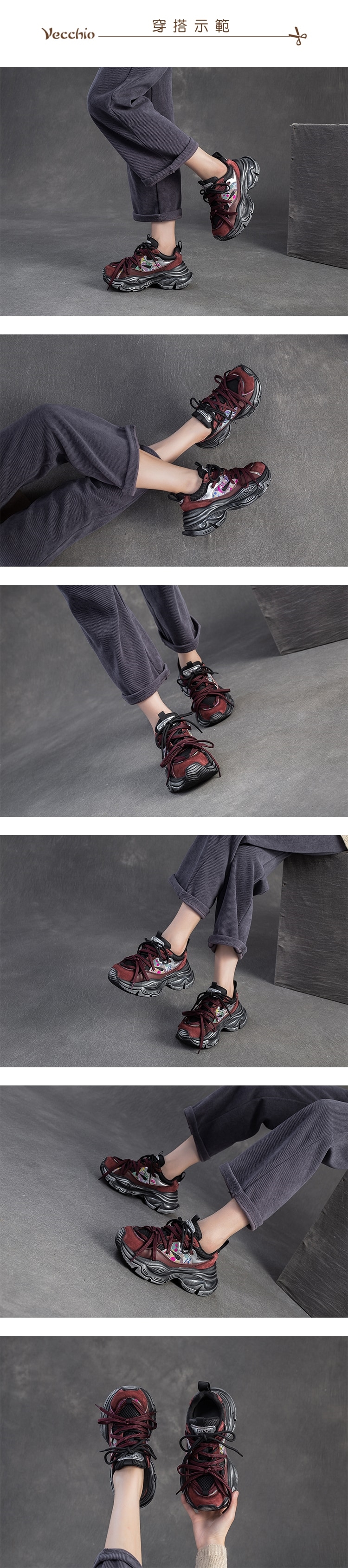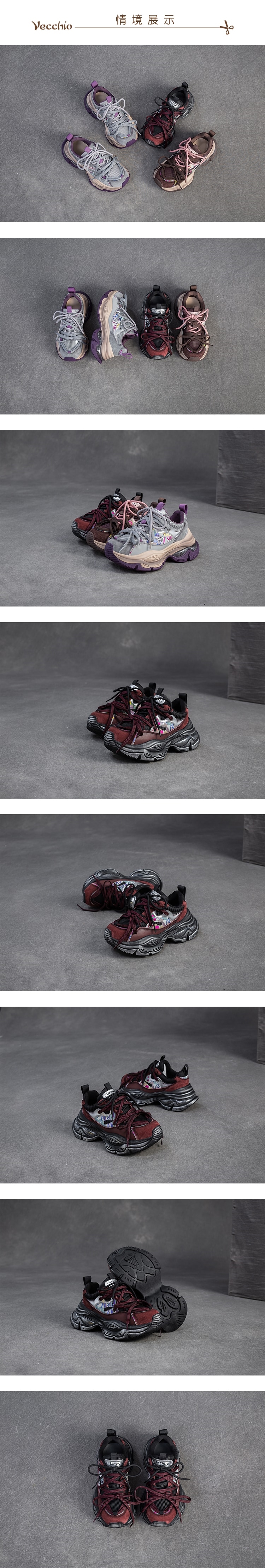 【VECCHIO】真皮撞色拼接厚底老爹鞋/真皮幻彩異材質撞色拼接潮流厚底老爹鞋 運動鞋 女鞋 黑