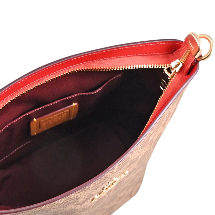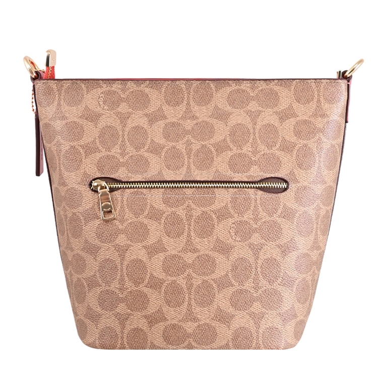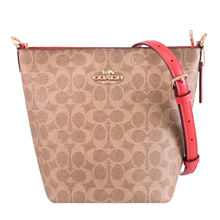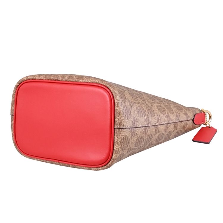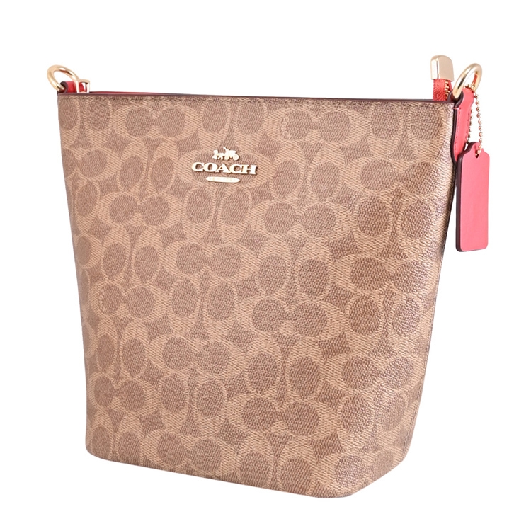 COACH經典水桶包款,採用滿版印花塗層帆布製作而成,拉鍊開口安全收納,背帶可拆可調整長度